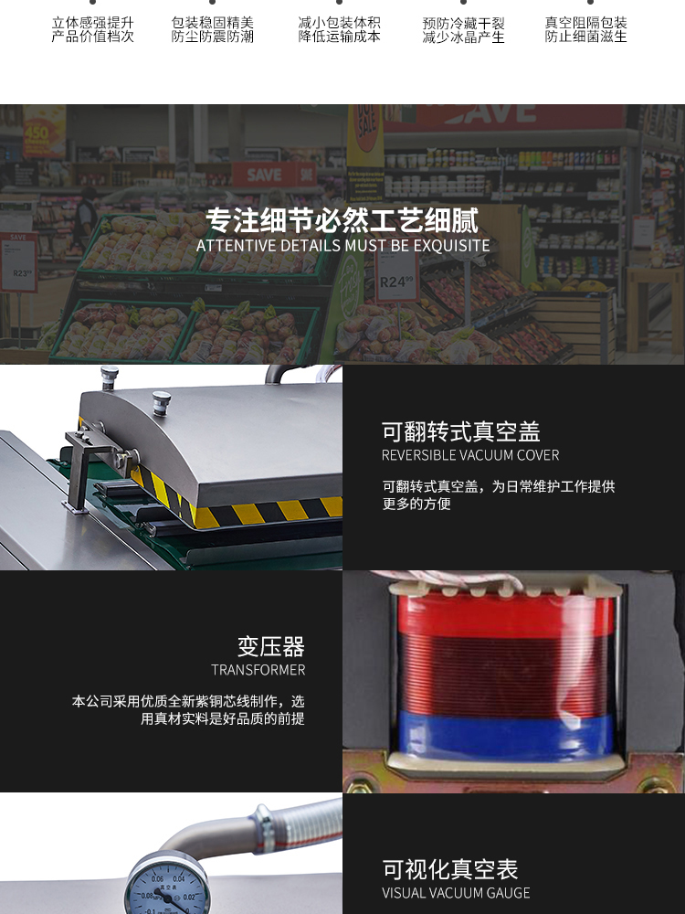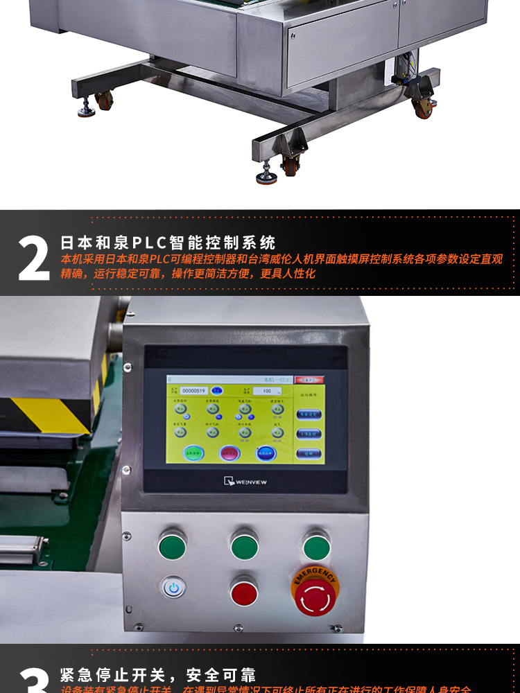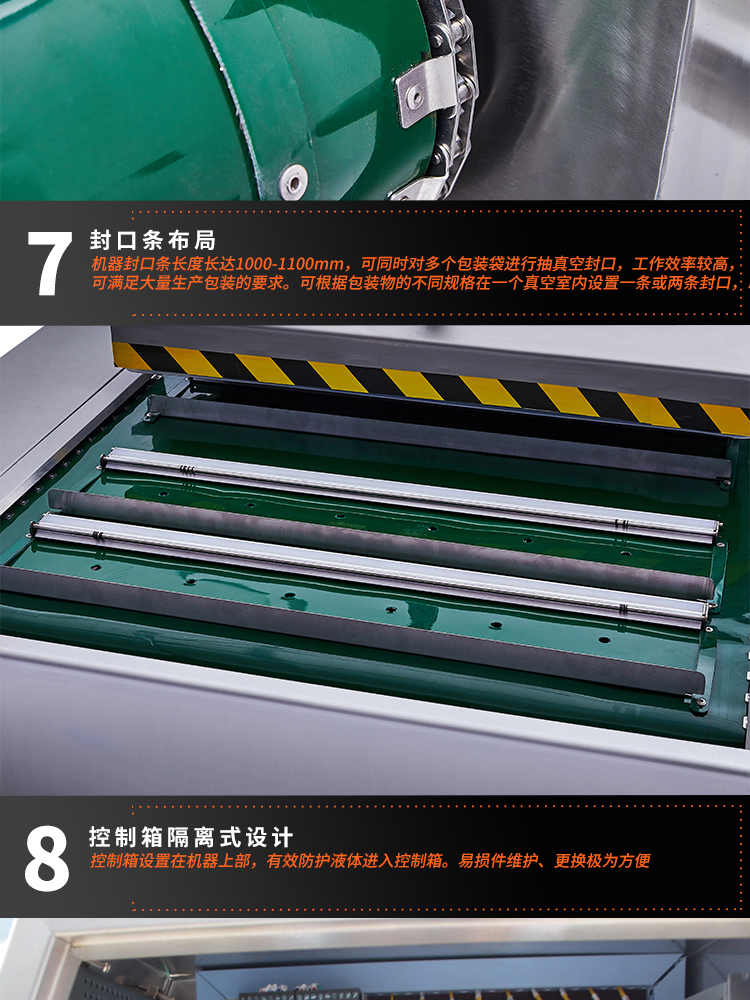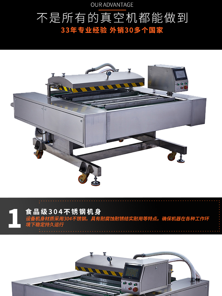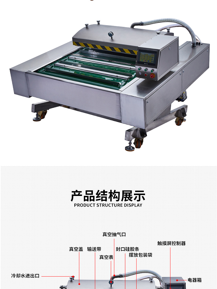 ·遇包装袋内较多水份或汤汁的物品,可调整输送台面角度,使包装袋内水份或汤汁不致溢出。