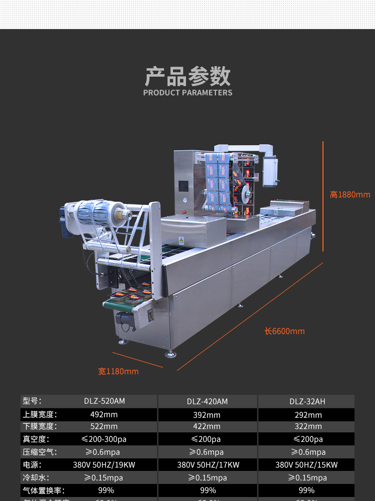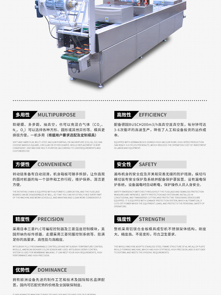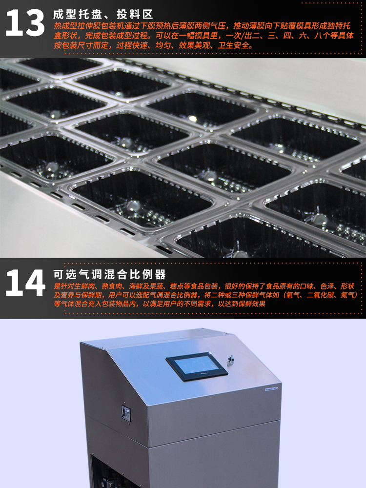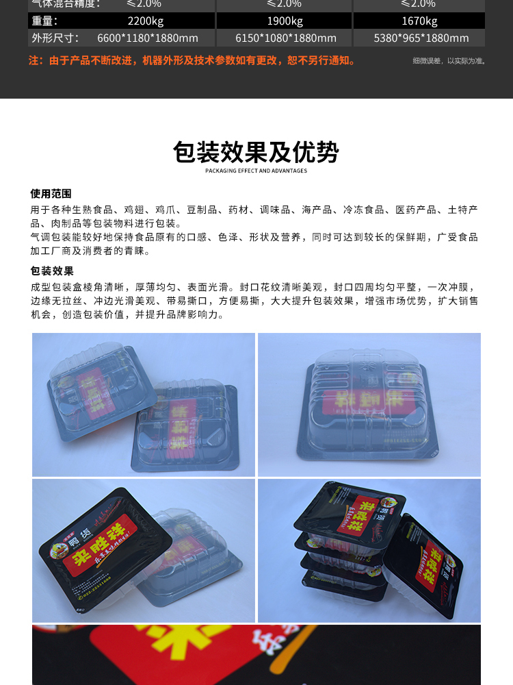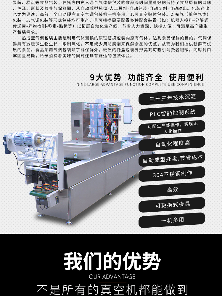 ? 先进的热成型气调包装方式,日产量可高达10000包以上。大大提高生产效率及质量,省时、省力等真正实现了自动化设备