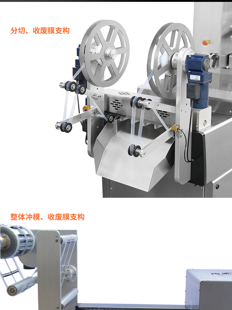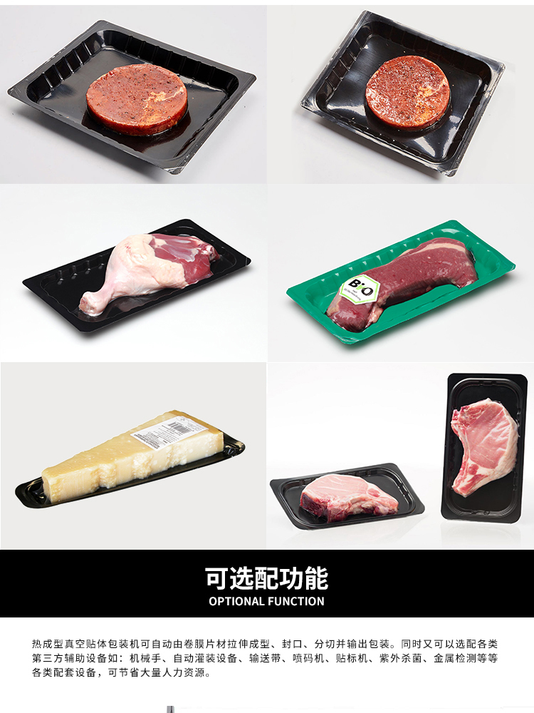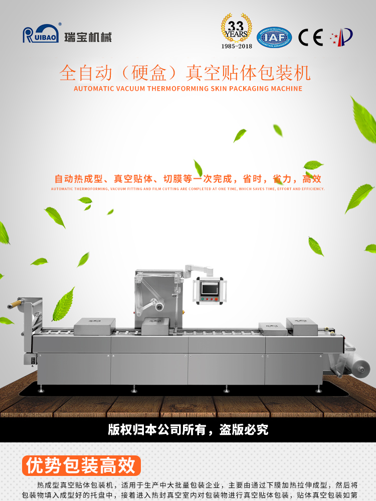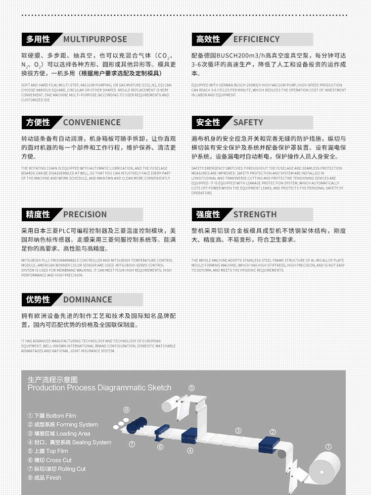 ? 先进的热成型真空贴体调包装方式,日产量可高达10000包以上。大大提高生产效率及质量,省时、省力等真正实现了自动化设备