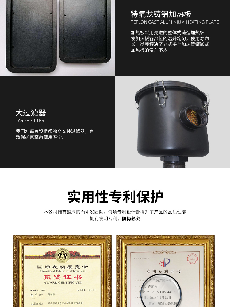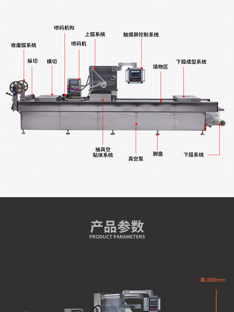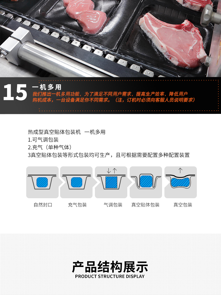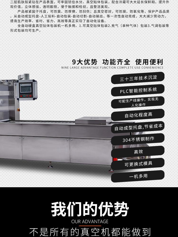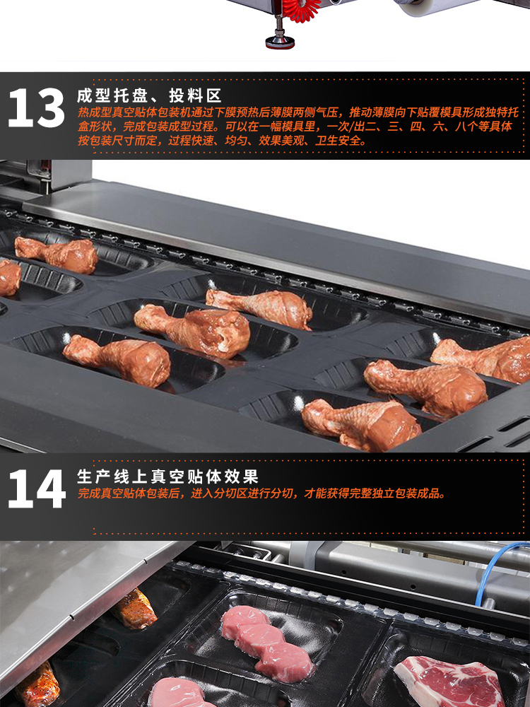? 先进的热成型真空贴体调包装方式,日产量可高达10000包以上。大大提高生产效率及质量,省时、省力等真正实现了自动化设备