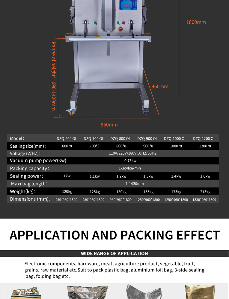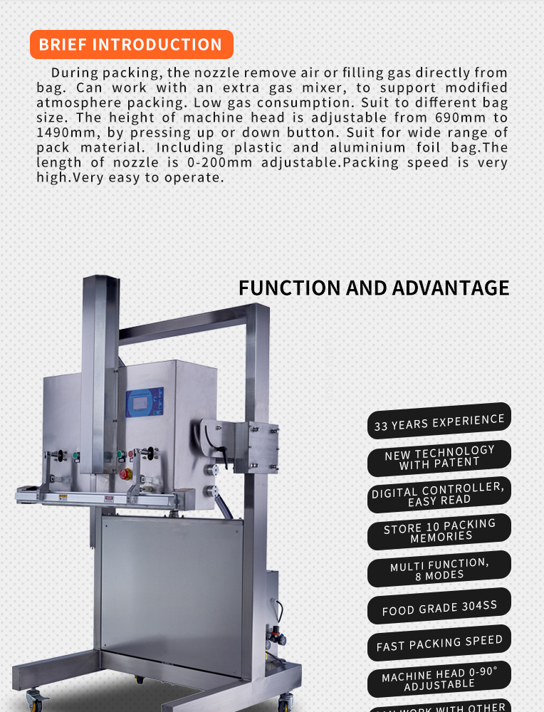 product name:Liftable vertical external vacuum sealer (gas filling)