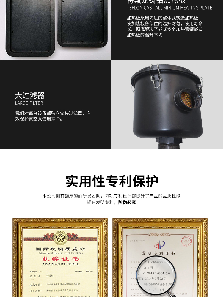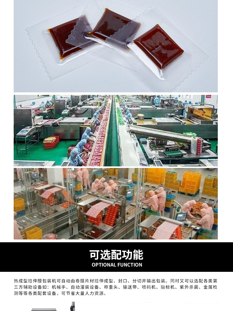 ? 先进的热成型真空贴体调包装方式,日产量可高达10000包以上。大大提高生产效率及质量,省时、省力等真正实现了自动化设备