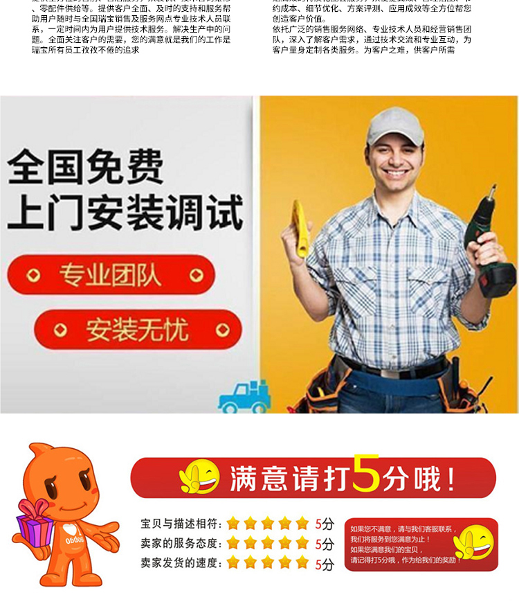 ? 品质售后服务,24小时内给出解决方案,48小时可到厂维修。